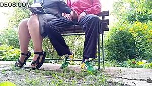 Mother-in-law lifts her miniskirt flashing wet panties and big natural tits teasing son-in-law on busy street
