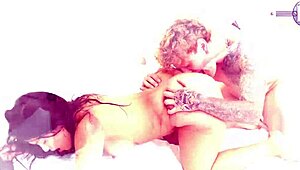 mature hot milf blonde and young sexy brunette student kiss passionately stripping lingerie in taboo kitchen roleplay