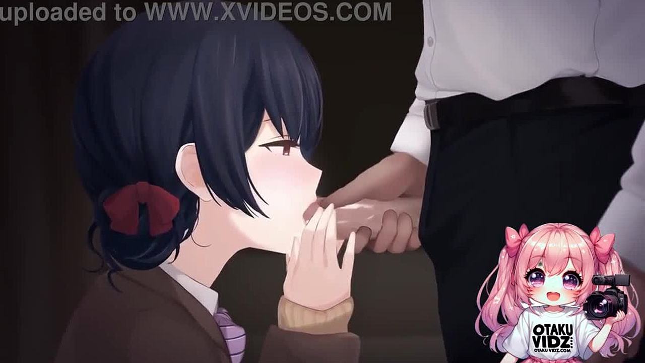 Anime worshipping cock and eating cum on her knees