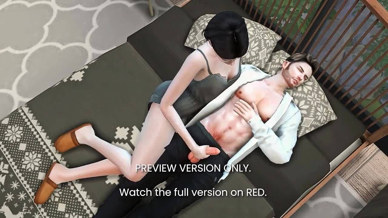 3D cartoon of cheating wife banging older neighbor man