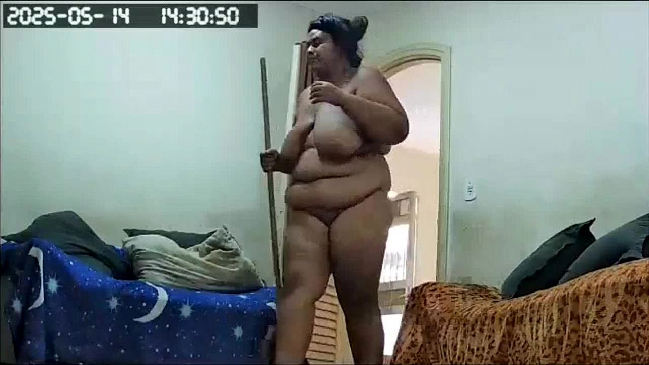 Look at that maid's huge ass and big pussy while she cleans naked!