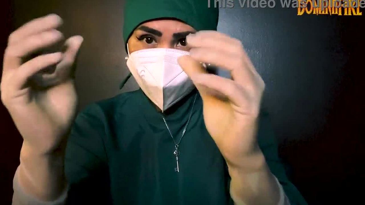 nurse daisy bean spreads small tits in latex gloves for mandatory vibrator orgasm