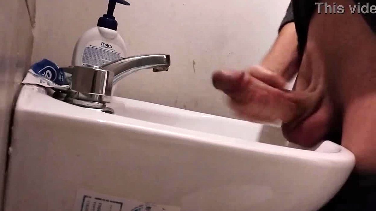 Resting balls on sink, getting huge cock ready for massive cumshot!