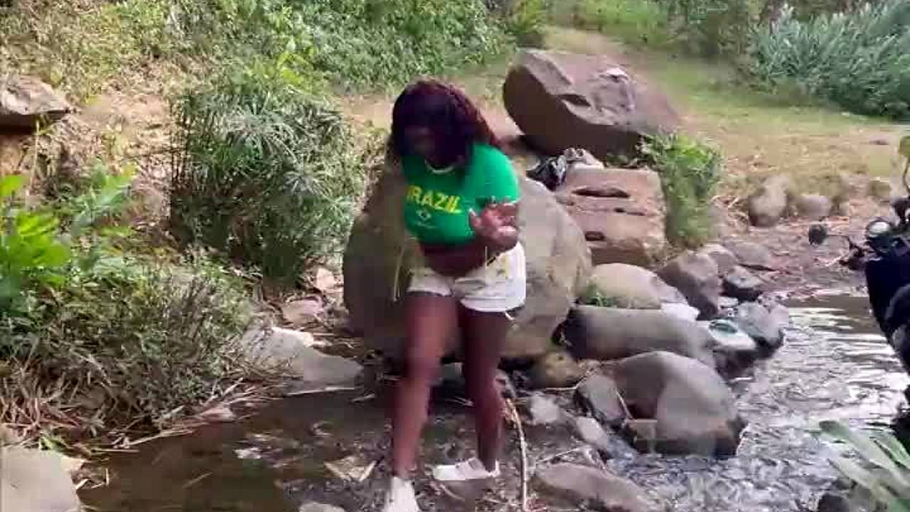 Ever seen a skinny Latina get wet in the forest?
