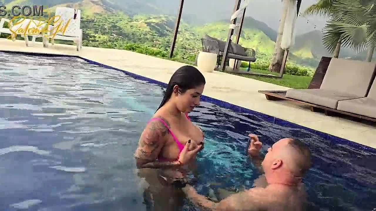 Salome gil's huge latina ass bounces wildly on spanish cock by the pool