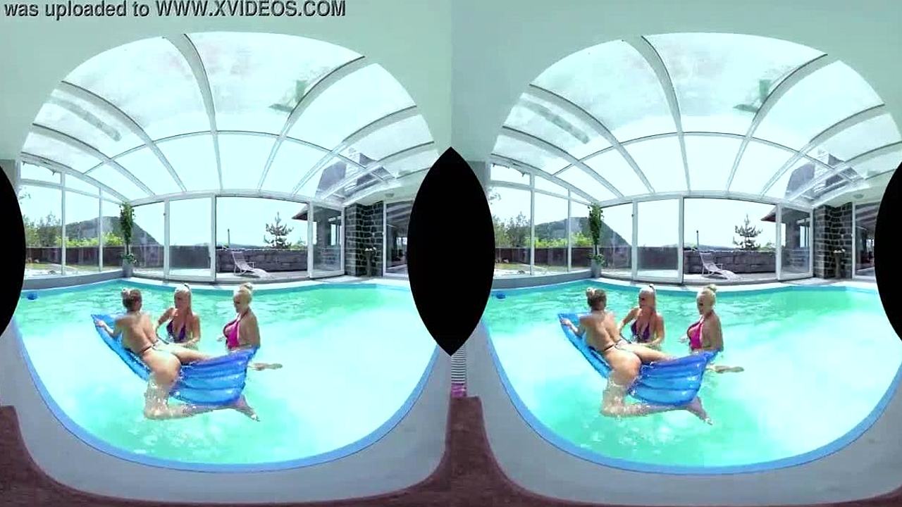 Four shaved euro blondes with huge tits lick pussies asses at poolside foursome orgy