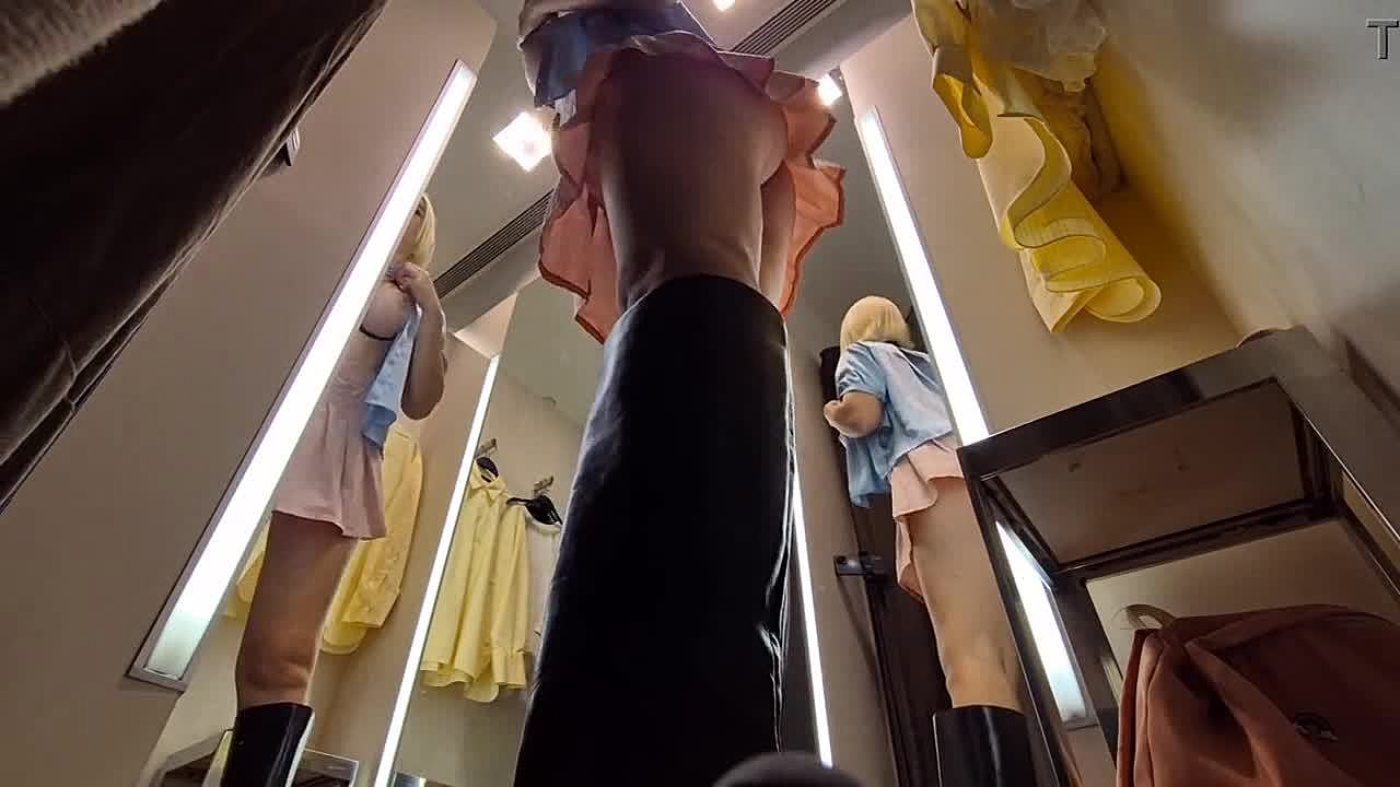 Blonde's see-through try-on without panties spied wet in dressing room!