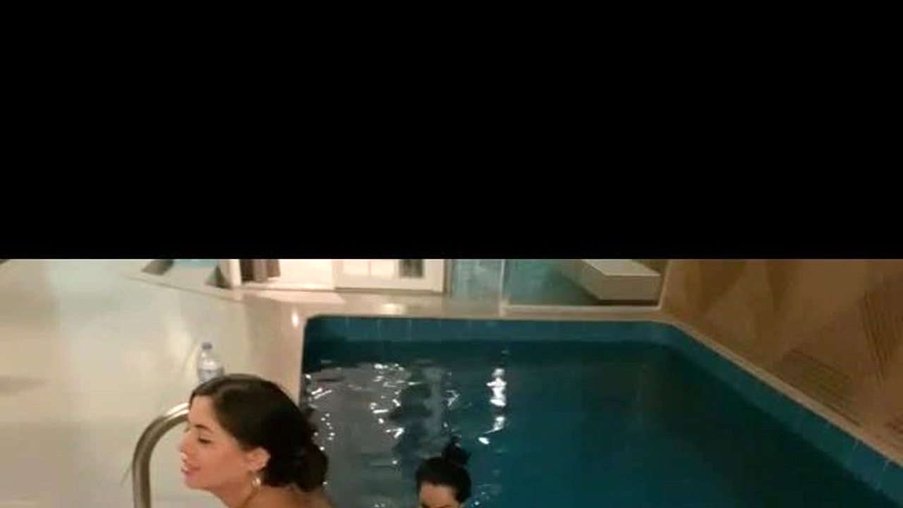 Pool orgy hints at steamy water fun and teasing licks