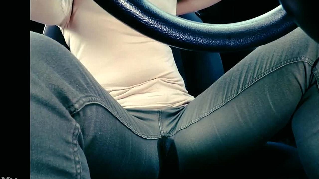 Big sis stuck in traffic jam desperately holds pee but soaks jeans wetting everywhere