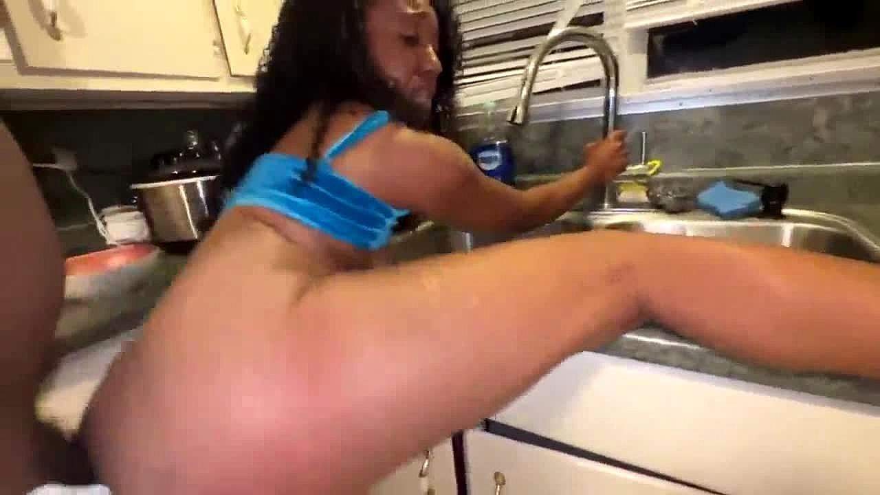 Hot ebony anal teen 18+ seduces stepdad for kitchen creampie risky fuck