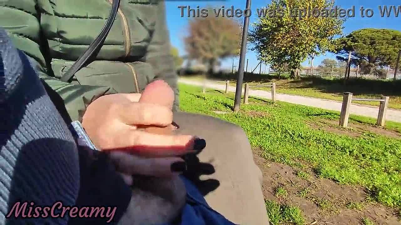Flashing cock in public park with stepdaughter helping cumshot